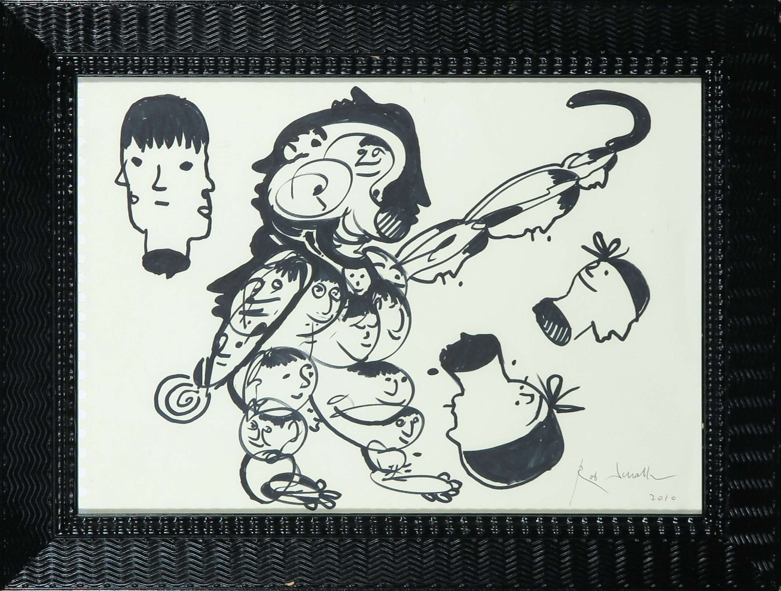Deze stifttekening “Hoofden” van Rob Scholte is vervaardigd in 2010, in het voormalig Rob Scholte Museum te Den Helder.